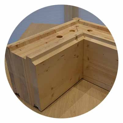 Downstream processing of log blanks is efficient: Corners are rebated and CNC machining is used to make openings, electrical holes and the necessary joints.